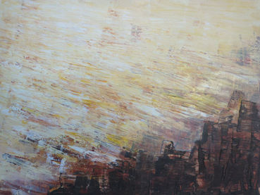 My paintings, examples of which are reproduced above and below, involve my intuitively being drawn to music which I then listen to repeatedly whilst I paint. For this I use short extracts of music that is especially meaningful to me, each extract lasting around a minute and a half. I typically repeat such an extract for several hours at a time as I work on a painting, the process repeated on many different occasions over a period of weeks and sometimes months until the painting is finished. Repeating the music never feels like repeating the same experience. Rather it is a way of ever deepening into the present moment experience of the music until I feel that I have 'become the music' in a way that transforms my state of consciousness. It is only out of this that the painting emerges authentically in the way I work. 'Becoming the music' involves feeling immersed in it as though I am living within the music, continually aware of its transformative presence, whereas at other times I may listen but my mind wander and I lose awareness of the music at times.